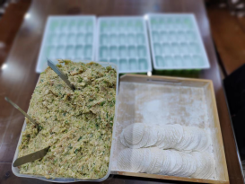 我們精心準(zhǔn)備食材和餃子皮,共同參與包餃子的過程。在歡聲笑語中,大家分工合作,有的剁肉餡,有的搟皮,有的包餃子。每個(gè)人都投入其中,展現(xiàn)出了團(tuán)結(jié)協(xié)作的精神。